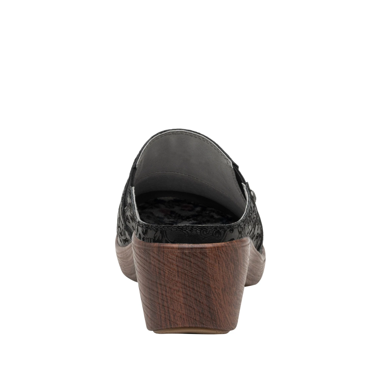 The Sereniti offers the timeless look of a traditional clog, complete with enhanced arch support for all day comfort. The subtle wedge gives added height without pressure on the ball of the foot. Rich supple leather enhances the overall aesthetics, allowing this shoe to transition seamlessly from work to leisure. The removable printed micro suede footbed adds an eye-popping detail.