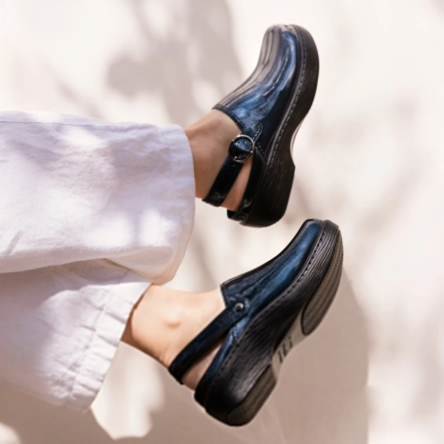 Practical meets fashionable with the Olie, a sling-back leather clog. This twist on a timeless classic features a stain-resistant leather upper, padded sling-back strap with an adjustable buckle, and slip-resistant outsole. This style also provides the comfort Alegria is known for with a durable microsuede removable footbed that can easily be swapped from medium to wide width.